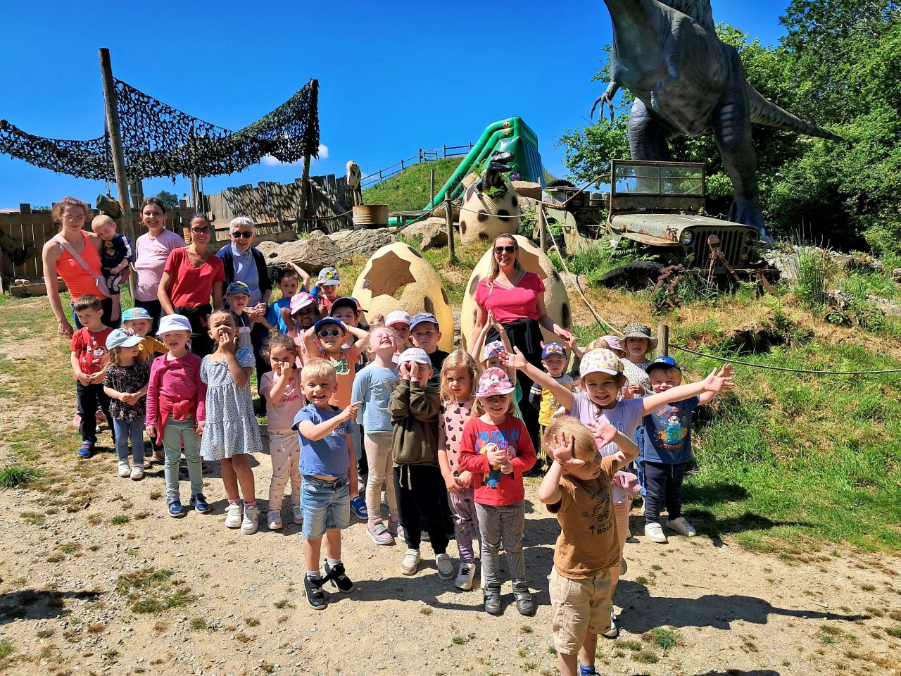 Le matin, ils ont visité la mini ferme. Ils ont pu nourrir les animaux (donner du grain aux poules, donner le biberon aux chevreaux). Après le pique-nique, nous avons visité le "Dino Parc". Les élèves ont également eu la possibilité de jouer dans les différentes attractions du parc. Les élèves étaient tous ravis de leur journée 😊!!!